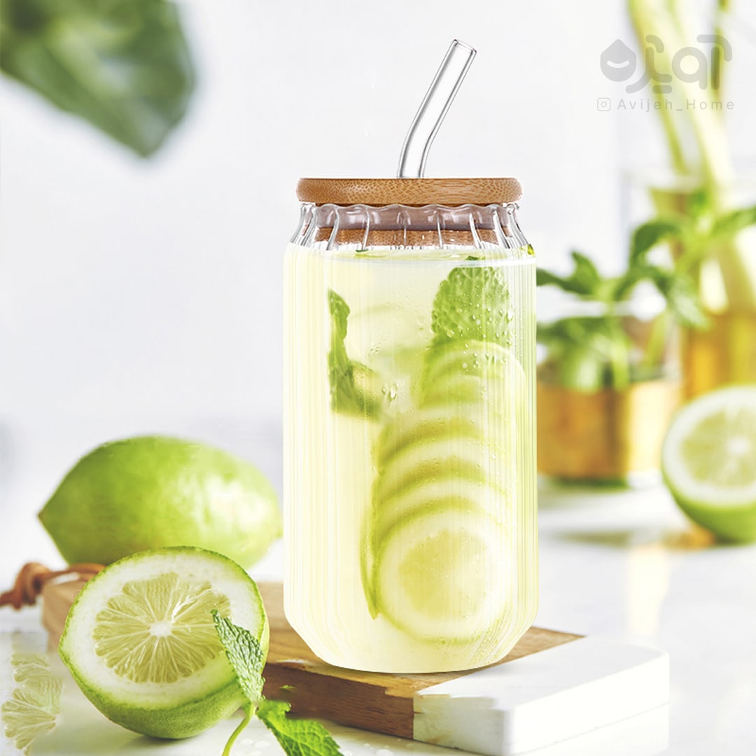 لیوان اسموتی پیرکس درب بامبو 500میل شیاردار